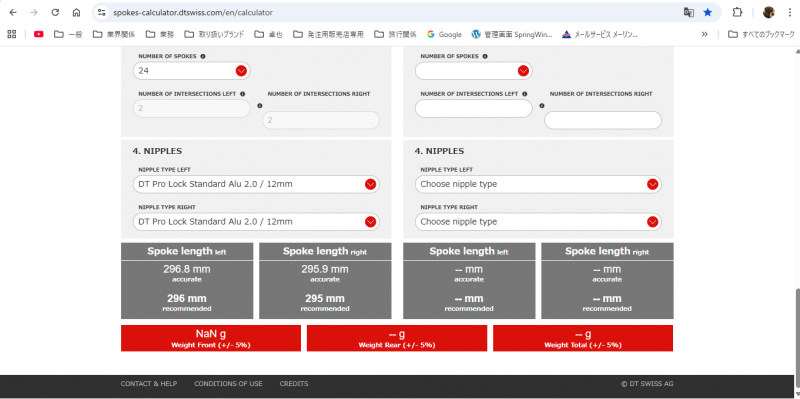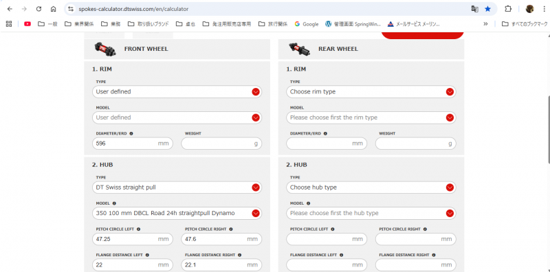 DT Swissの公式サイトにあるスポーク計算ツールへ入力。導き出された数値を元に、最適な長さのスポークを用意します。